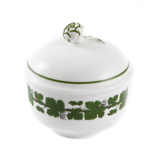 Zuckerdose, Voller grüner Weinkranz, weißer Rand, 9 cm