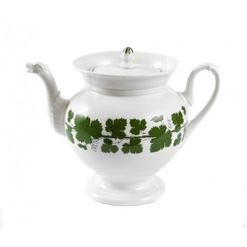 Teekanne, Voller grüner Weinkranz, weißer Rand, 1,3 l