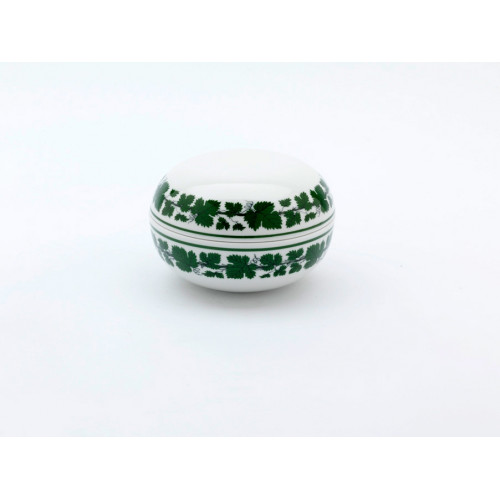Dose, Form "Neuer Ausschnitt", Voller grüner Weinkranz, weißer Rand, ø 13 cm