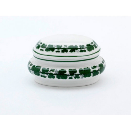 Dose, Voller grüner Weinkranz, weißer Rand, L 12 cm