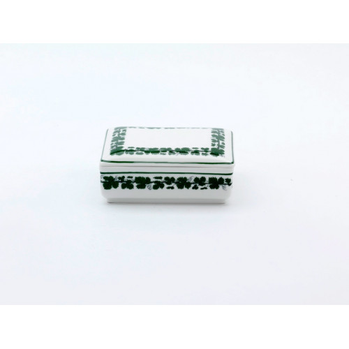 Dose, Voller grüner Weinkranz, weißer Rand, 11x8,5 cm