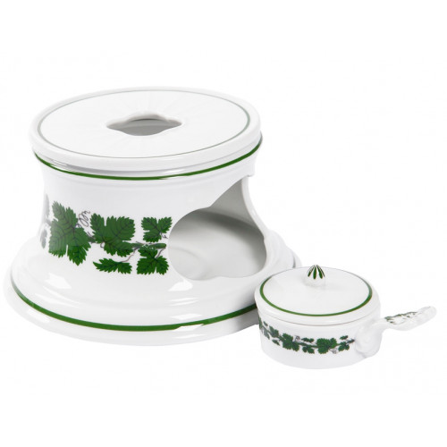 Stövchen, Form "Neuer Ausschnitt", Voller grüner Weinkranz, weißer Rand, ø 16 cm