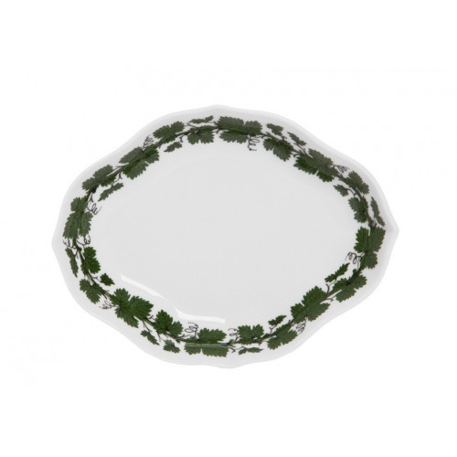 Schälchen, Form "Neuer Ausschnitt", Voller grüner Weinkranz, weißer Rand, L 12 cm