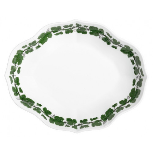 Schälchen, Form "Neuer Ausschnitt", Voller grüner Weinkranz, weißer Rand, L 18 cm