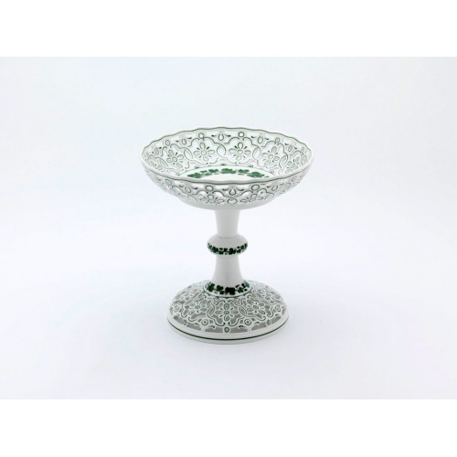 Schale auf Fuß durchbrochen, Voller grüner Weinkranz, weißer Rand, H 21 cm