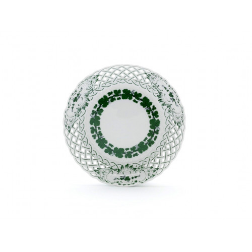 Schale, durchbr. rund, Form "Neuer Ausschnitt", Voller grüner Weinkranz, weißer Rand, ø 21 cm