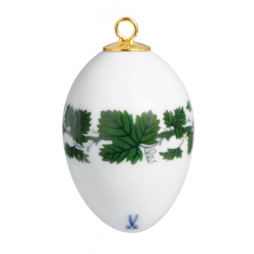 Miniatur-Ei, Voller grüner Weinkranz, weißer Rand, H 4,5 cm