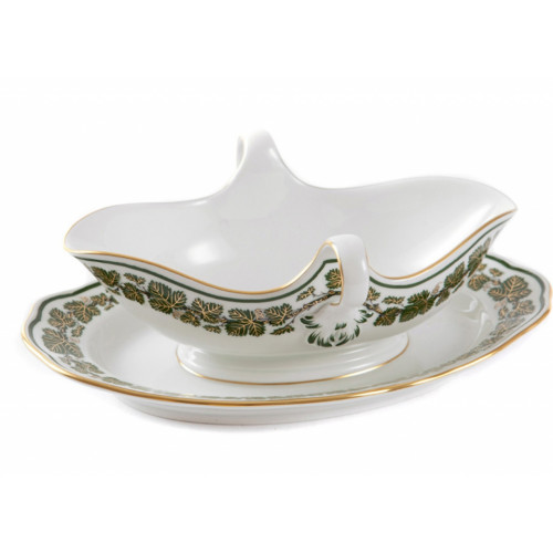Sauciere, Form "Neuer Ausschnitt", Voller grüner Weinkranz, Goldadern, Goldrand, V 0,25 l