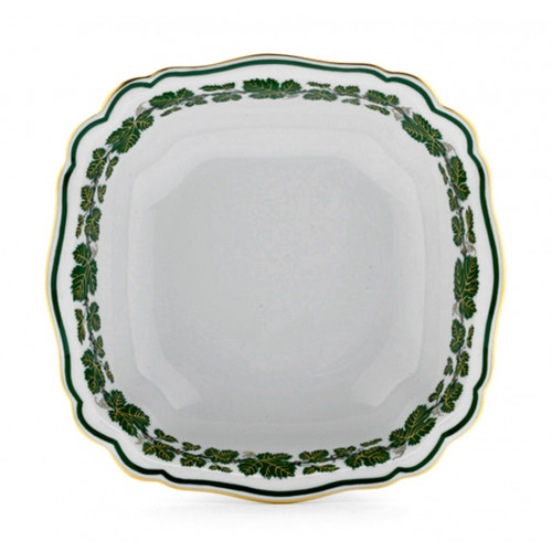 Schüssel, eckig, Form "Neuer Ausschnitt", Voller grüner Weinkranz, Goldadern, Goldrand, L 21 cm