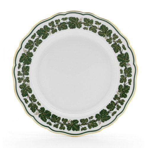 Speiseteller, Form "Neuer Ausschnitt", Voller grüner Weinkranz, Goldadern, Goldrand, ø 28 cm