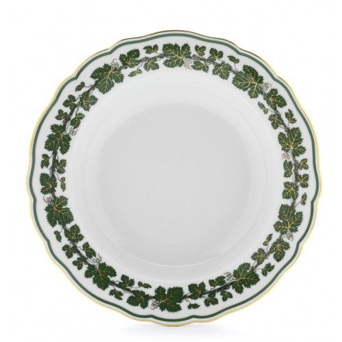 Suppenteller, Form "Neuer Ausschnitt", Voller grüner Weinkranz, Goldadern, Goldrand, ø 22 cm
