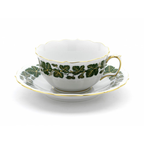 Teetasse m.U., Form "Neuer Ausschnitt", Voller grüner Weinkranz, Goldadern, Goldrand, V 0,20 l