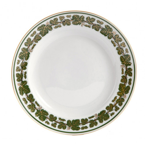 Teller,flach, Form "Glatte Form", Voller grüner Weinkranz, Goldadern, Goldrand, 16 cm