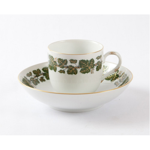 Kaffeetasse m.U., Voller grüner Weinkranz, Goldadern, Goldrand, 0,2 l