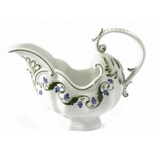 Sauciere, Form "Neuer Ausschnitt", Mahonienranke, grün, Früchte, blau, weißer Rand, V 0,40 l