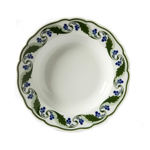 Suppenteller, Form "Neuer Ausschnitt", Mahonienranke, grün, Früchte, blau, weißer Rand, ø 22 cm
