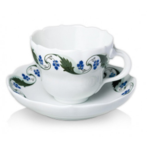Kaffeetasse m.U., Mahonienranke, grün, Früchte, blau, weißer Rand, V 0,25 l