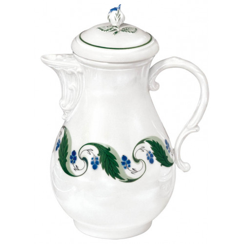 Kaffeekanne, Form "Neuer Ausschnitt", Mahonienranke, grün, Früchte, blau, weißer Rand, V 1,20 l