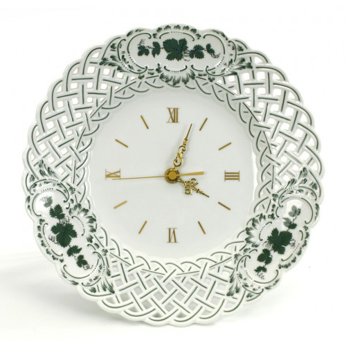 Wanduhr, Voller grüner Weinkranz, Zifferblatt, gold, weißer Rand