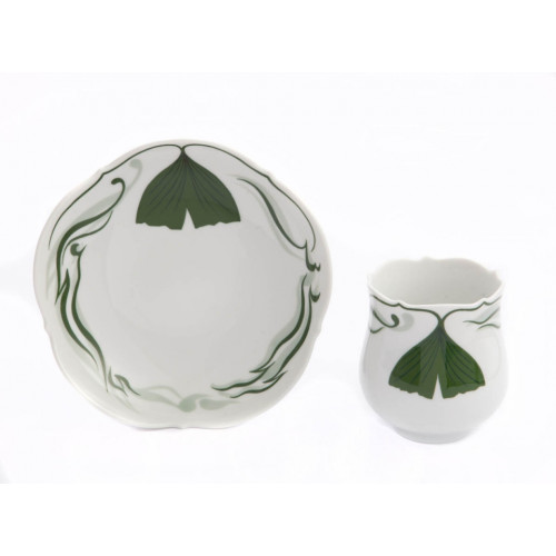 Kaffeetasse m.U., Ginkgoblatt mit Lösungsmalerei, grün, weißer Rand