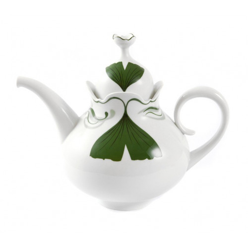 Teekanne, Ginkgoblatt mit Lösungsmalerei, grün, weißer Rand, V 1,15 l