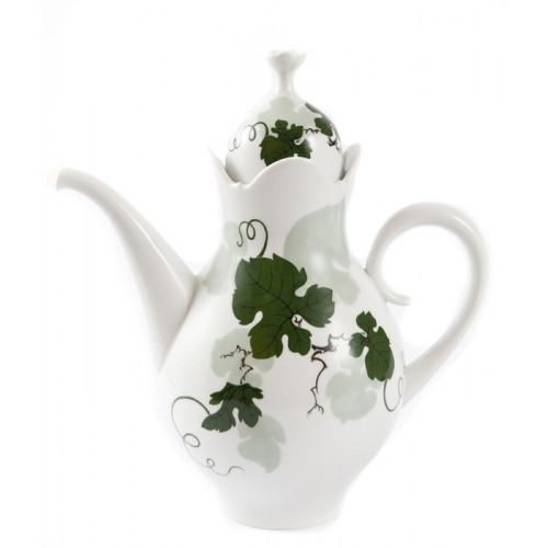 Kaffeekanne, Form "Großer Ausschnitt", Vinum, Weinblatt mit Ranken, grün, weißer Rand