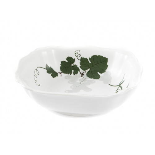 Schüssel, eckig, Weinblatt mit Weintraube,grün,mit Lösungsmalerei,weißer Rand, L 21 cm