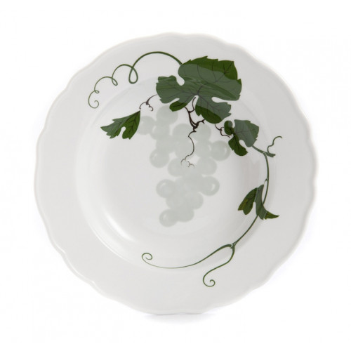 Suppenteller, Weinblatt mit Weintraube,grün,mit Lösungsmalerei,weißer Rand, ø 22 cm