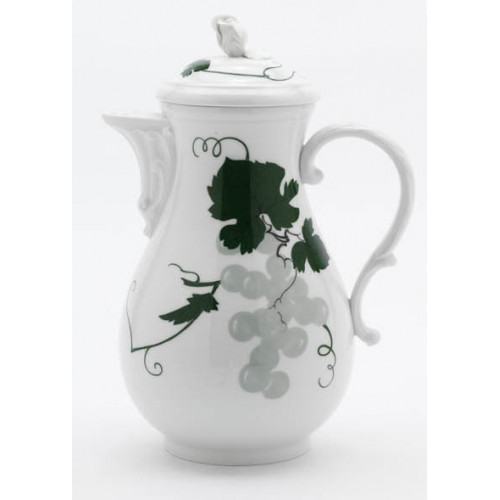 Kaffeekanne, Form "Neuer Ausschnitt", Weinblatt mit Weintraube,grün,mit Lösungsmalerei,weißer Rand, V 1,20 l