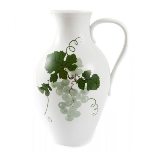 Krug, Weinblatt mit Weintraube,grün,mit Lösungsmalerei,weißer Rand, 3,75 l