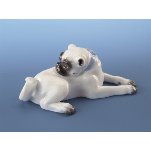 Mops,liegend n.rechts o.Sch., Bunt staffiert