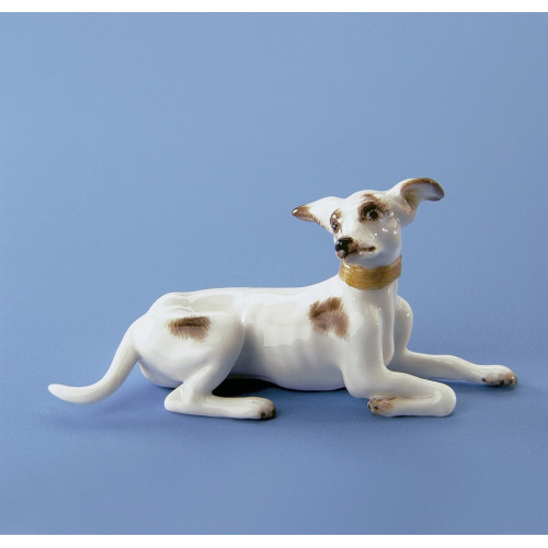 Windhund,liegend ohne Sockel, Bunt staffiert