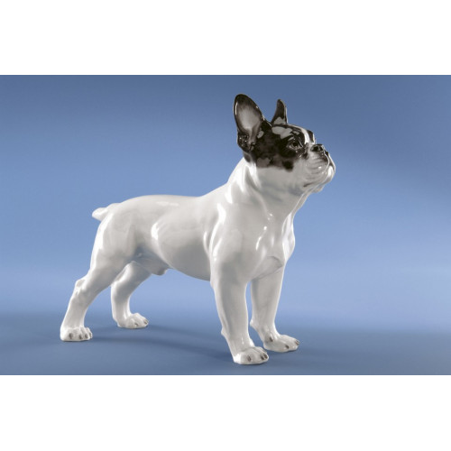 In Meissen werden Traditionen begründet und weitergegeben. Modellschöpfungen großer Bildhauer und Designer leben in den originalgetreuen Reproduktionen unserer Bossierer und Modelleure fort und inspirieren diese immer wieder zu eigenen Kreationen. Die 1955 entstandene Bulldogge unseres Modelleurs Rudolf Rehbeil steht zum Beispiel in der Modell-Tradition jener Wald-, Haus- und Hoftiere, die von Bildhauern wie Erich Oehme oder Erich Hösel in den 1930er Jahren in Meissen begründet wurde. Wir finden, dass der kraftstrotzend-gutmütige Vierbeiner eine schöne Reminiszenz an diese großen Vorgänger darstellt - obgleich Rehbeil im Unterschied zu ihnen nie eine akademische Ausbildung absolviert hat. Es braucht eben nicht immer die Weihen der Hochschule, um Modelle zu schaffen, die sich der Ausformung in Meissener Porzellan oder Böttgersteinzeug als würdig erweisen. Das Modell „Französische Bulldogge“ ist auch in einer undekorierten Variante oder in Böttgersteinzeug (86130) erhältlich.