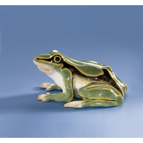 „Einen Frosch zum Verkauf aufs Warenlager nach der Natur poussiret“ notierte sich Johann Joachim Kaendler im Sommer 1742 in seinen Arbeitsbericht. Doch wie brachte er es zuwege, dass ihm ein ein lebendiges Exemplar als Modell zur Verfügung stand? Sehr wahrscheinlich ließ er sich ein Tier aus der Umgebung einfangen und unter ein Glas setzen. Über 250 Jahre später wirkt Kaendlers Grasfrosch so quicklebendig wie damals. Dafür sorgen die modellgerechte Ausformung und die naturgetreue Aufglasurstaffage durch unsere Bossierer und Staffagemaler - ein kleines Beispiel dafür, was Meissen unter Wahrung der Tradition versteht.