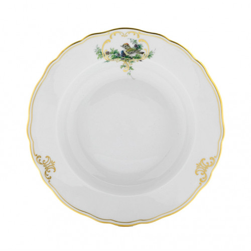 Операциониста, форма "Нойер сайту ausschnitt", Vogelmalerei,бунт,им Goldschild ауф борд Goldarabesken,Goldrand, ø 18 см