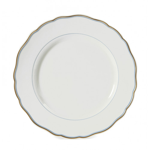 Speiseteller, форма "Нойер сайту ausschnitt", Randdekor, Goldband, farbiges группы, farbiger Spiegelfaden, hellblau, ø 28 см