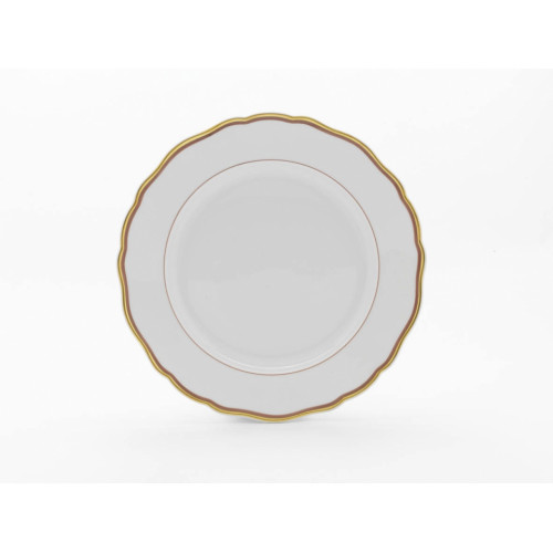 Speiseteller, форма "Нойер сайту ausschnitt", Randdekor, Goldband, farbiges группы, farbiger Spiegelfaden, Браун, ø 28 см