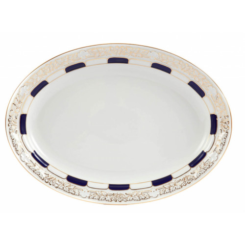 Платт, овал, форма "Икс-форма", кönigsblau glasiert, золото angespitzt, Л 36 см