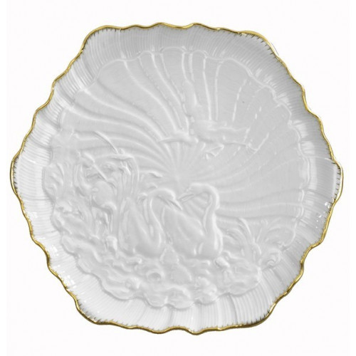 Sechseckig Kuchenschale, форма "Schwanendessin", Goldkante, Goldrand, ø 29 см